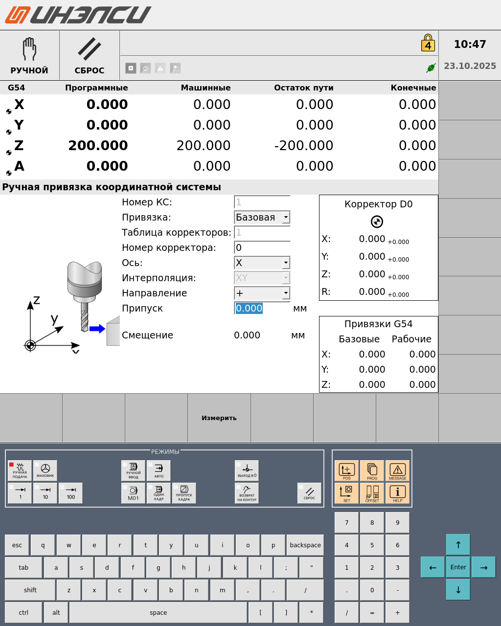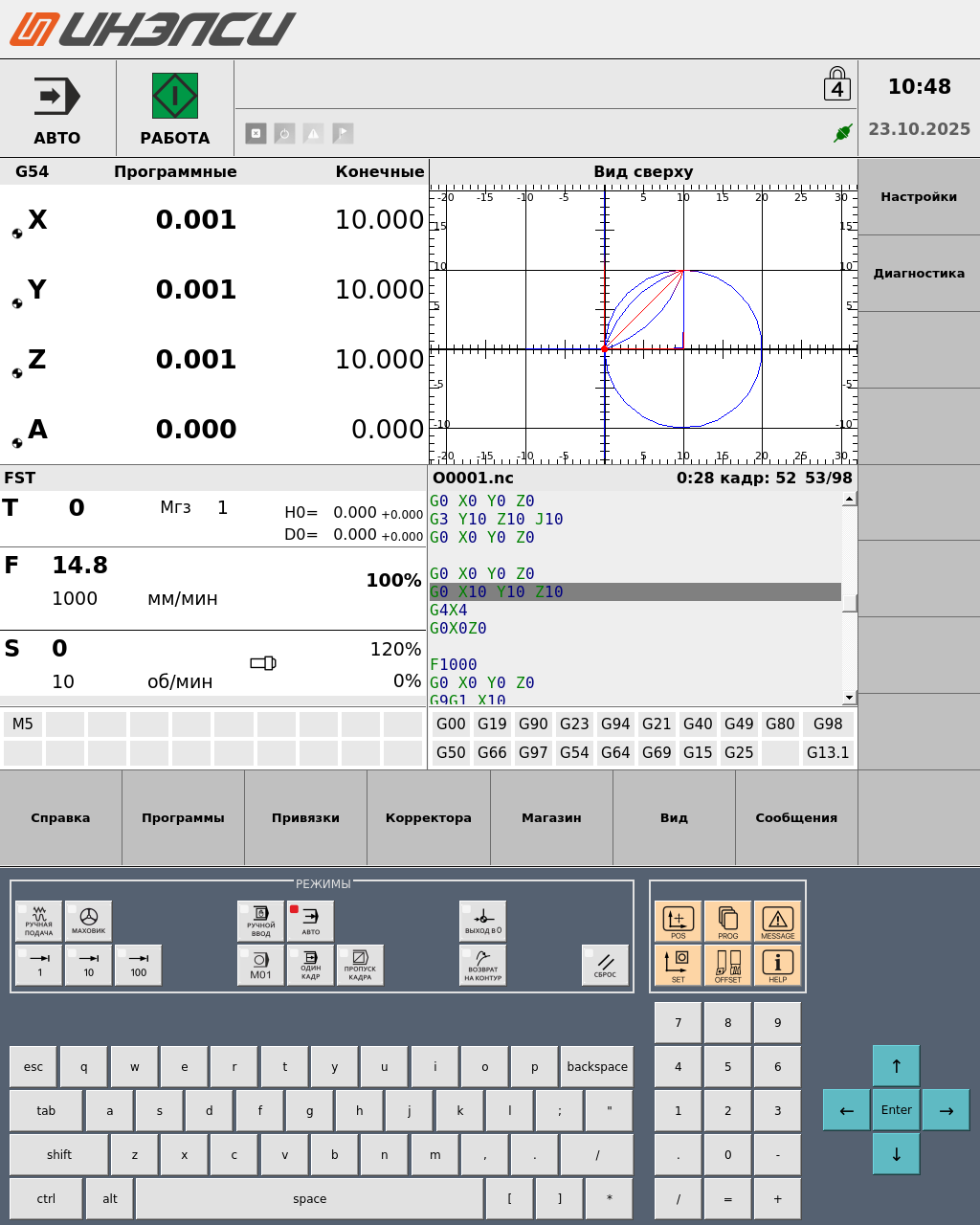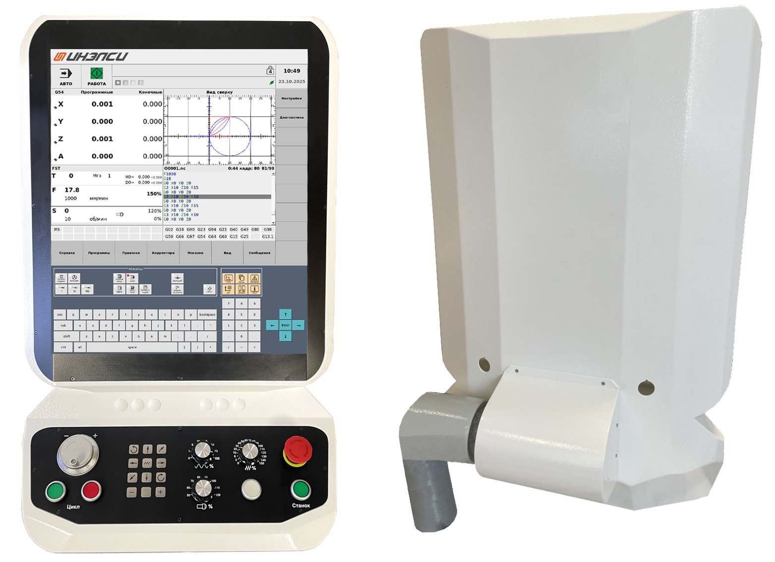 Физические кнопки управляют движением осей, автоматическим циклом старта/останова управляющих программ, вспомогательным оборудованием.