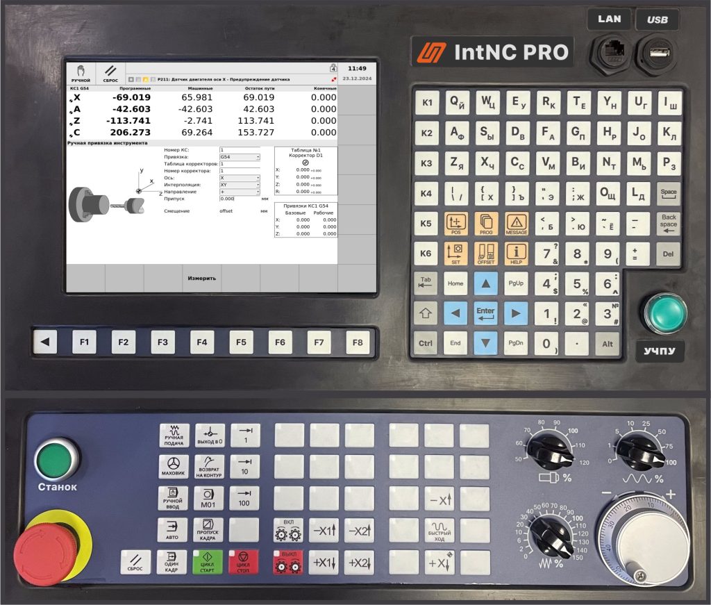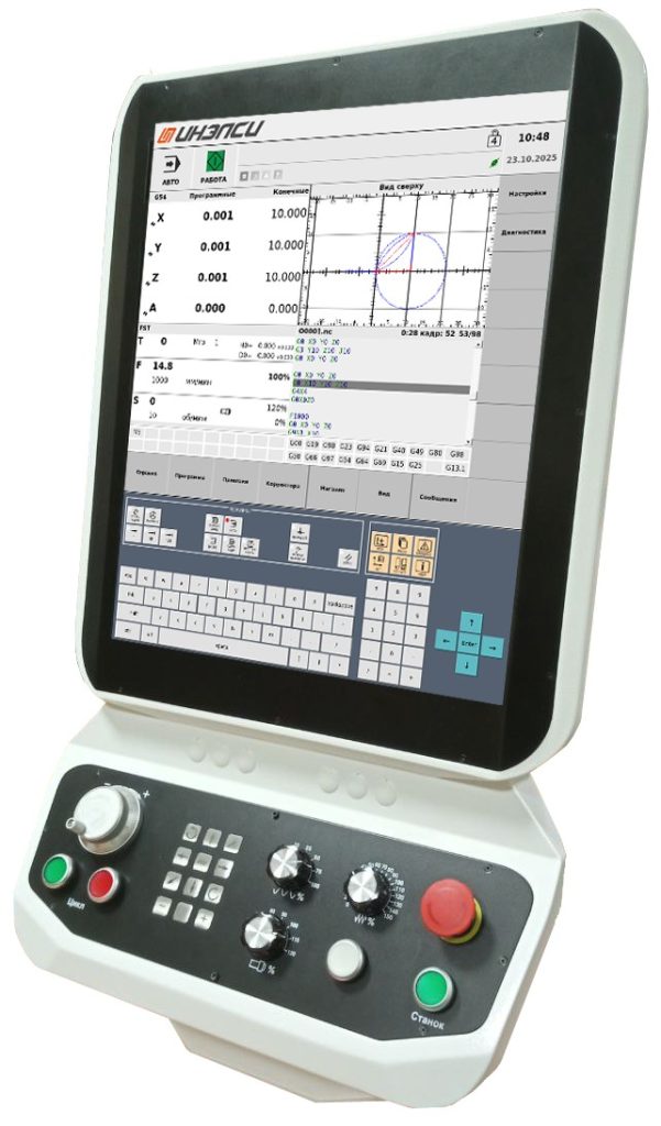 — физические кнопки управления движением осей, автоматическим циклом старта/останова управляющих программ, вспомогательным оборудованием;